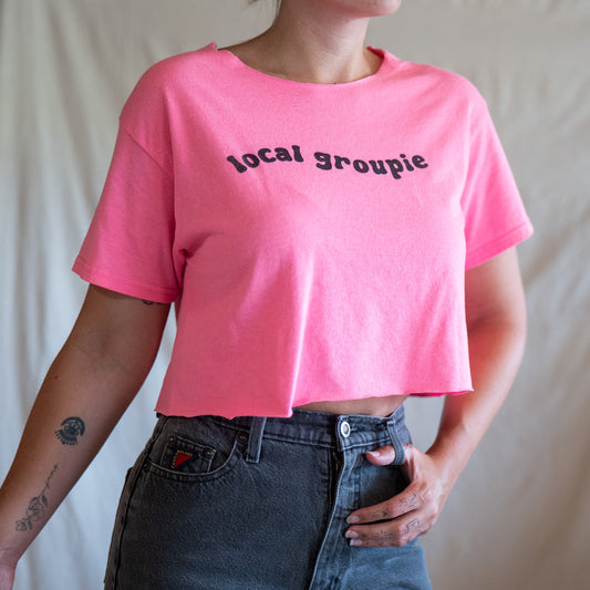 LOCAL GROUPIE upcycled hot pink DIY crop tee